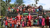 Sambut Hari Natal, Satgas Yonif 122/TS Hadirkan Santa Claus Bagikan Bingkisan di Perbatasan RI-PNG