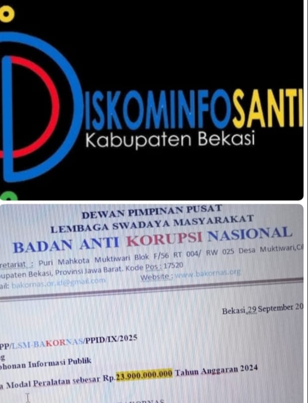 Guna mempertanyakan Transparansi dan Akuntabilitas Dinas Komunikasi, Informatika, Persandian dan Statistik Kabupaten Bekasi selaku pengguna anggaran terhadap Belanja Modal Peralatan, BAKORNAS telah mengirimkan surat Permohonan Informasi Publik dengan nomor surat 117/DPP/LSM-BAKORNAS/PPID/IX/2025, dan telah diterima oleh Pihak Dinas Komunikasi, Informatika, Persandian dan Statistik Kabupaten Bekasi Bekasi pada tanggal 29 September 2025.