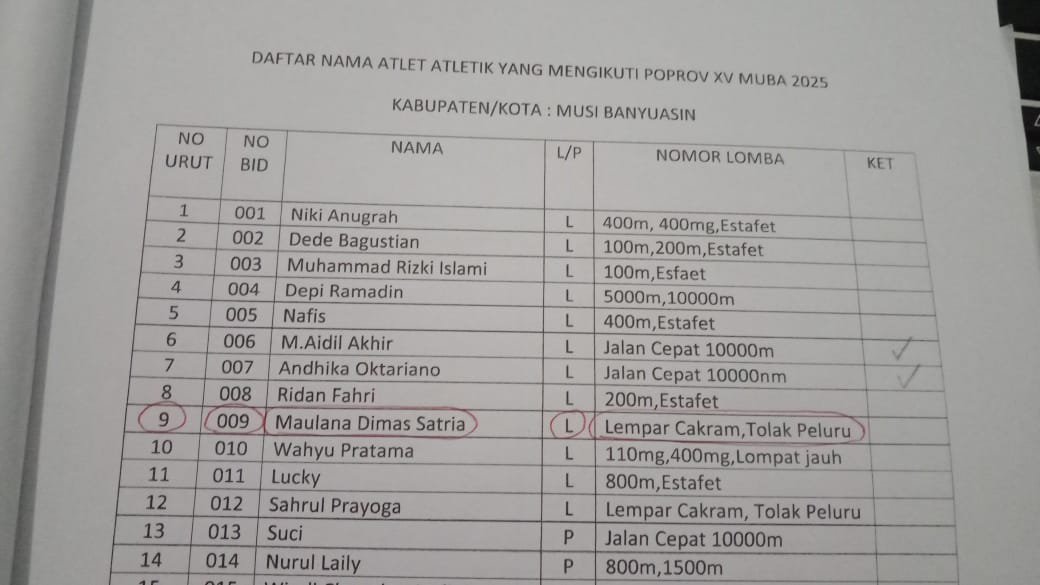 Dugaan ini mencuat setelah tim dari Kabupaten Empat Lawang menemukan bukti terkait keikutsertaan seorang atlet atletik yang memperkuat kontingen Musi Banyuasin (Muba). Atlet tersebut diduga kuat adalah atlet yang sama yang pernah membela Kota Kediri pada sebuah kejuaraan atletik pada 3 Juli 2025.di Jawa Timur Porprov ke lX