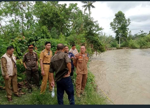 Dari Desa Lawang Agung PJ Bupati dan rombongan mengecek abrasi sungai keruh yang mengakibatkan rumah dinas UPTD Puskesmas Nanjungan yang halaman nya tergerus arus sungai keruh (red)