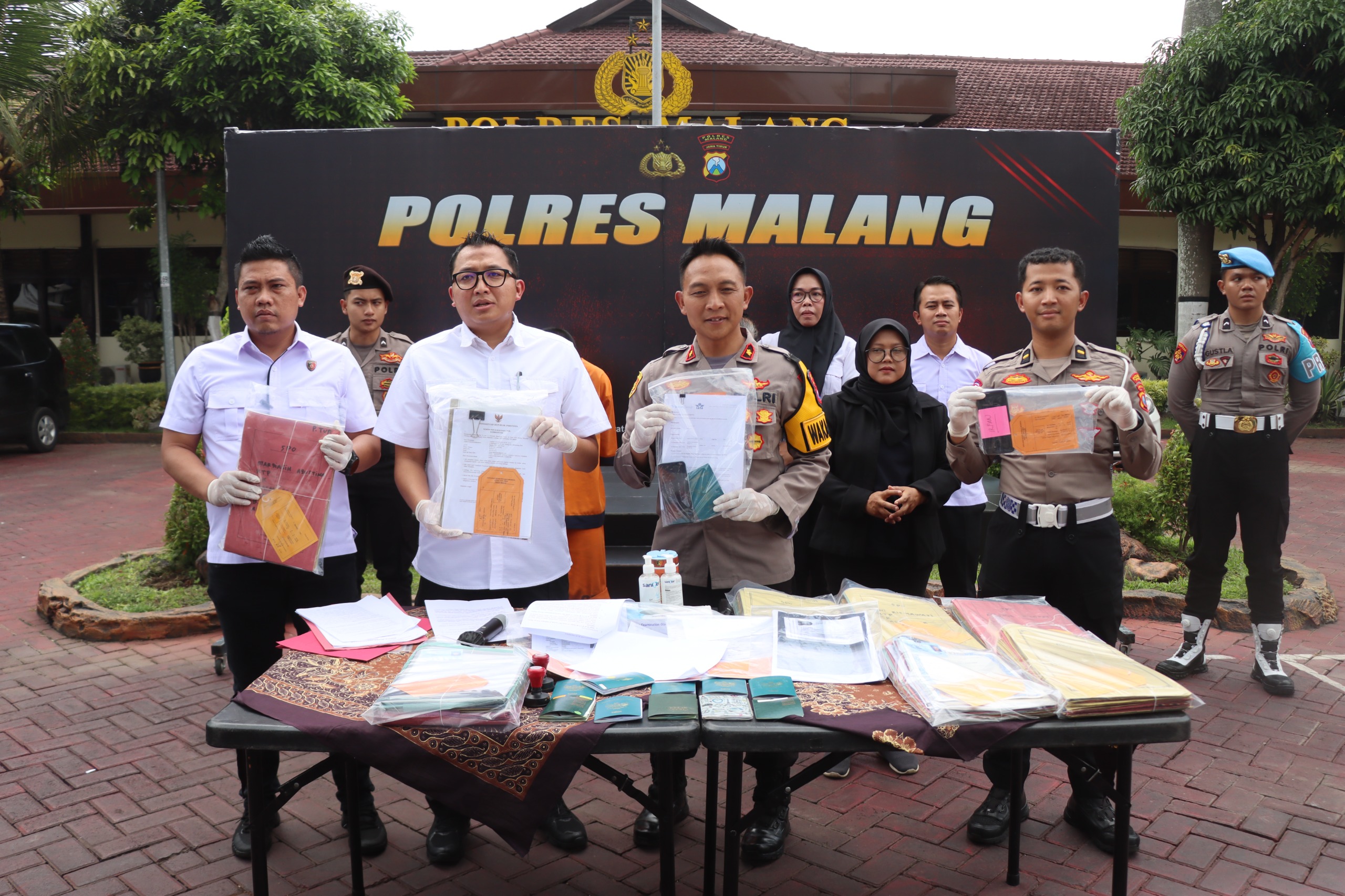 Wakapolres Malang, kompol Imam Mustolih, mengatakan ada dua pelaku ditangkap, yakni perempuan berinisial NJ (51) warga Desa Gading Kecamatan Bululawang, dan IH (27) pria asal Desa Jatisari, Kecamatan Tajinan, Kabupaten Malang. Keduanya merupakan pemilik dan staf lembaga pelatihan kerja (LPK) Anugerah Jujur Jaya yang beralamatkan di Jalan Diponegoro, Desa Gading, Kecamatan Bululawang.